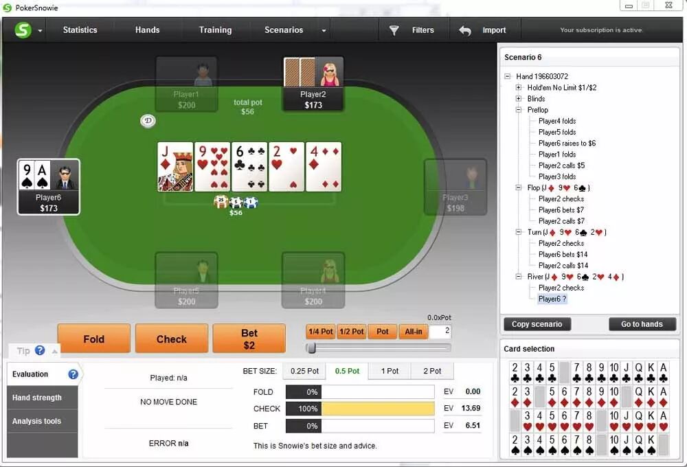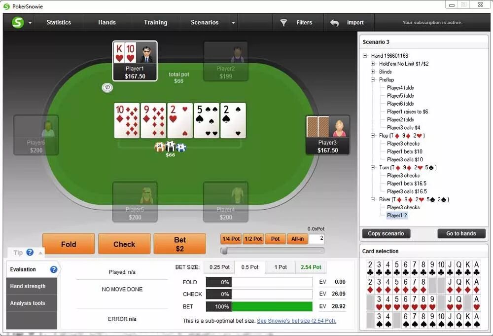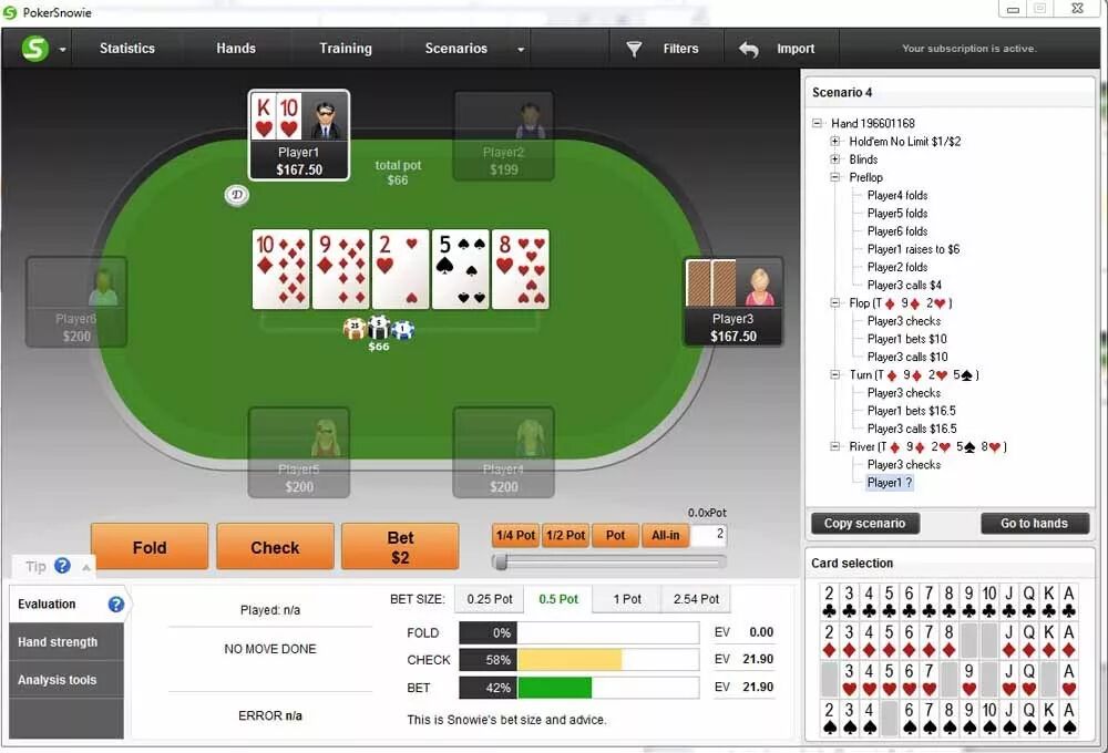 你在牌桌上的终极目标是赚到尽可能多的钱。即使你只是为了消遣,将自己定位为一名休闲玩家,你仍然应该尽可能多的赢钱。你的每小时收益或你的投资回报率是你长期而言在牌桌上有多成功的衡量指标。 当你坐在牌桌上时,不管你是打德州扑克还是其他扑克游戏,你往往会发现自己在河牌圈不确定是再下一注还是仅仅check希望自己拿下底池。许多牌手满足于只是check,拿走底池中已有的钱。但最优秀的牌手从不错过寻求价值的任何机会。这就是“价值下注”的重要性。 理解薄价值下注的基本前提 当你在牌局中时,你的终极目标是从对手那儿赢得尽可能多的筹码,你可以通过下注迫使他们弃牌,或者在你拿着最好牌时让他们支付。然而,在有些场合你不确定自己在河牌圈是否拿着最好牌,需要在下注和check之间做出选择。 在这些场合,如果你的牌可能领先于对手的范围,你应该寻求薄价值下注。当然,这可能难以进行当场计算,但你应该能够在河牌圈把对手推测到一个特定的范围,并对何时你的牌可能更好有很好的认识。 显然,你也得考虑对手范围中有哪些你能够打败而且将再跟注一次的牌。在某些场合,对手可能有一个极度两极化的范围,即要么是坚果牌要么是纯空气牌(主要是破灭的听牌),你不应该考虑价值下注,因为这没有多少意义。 我们将在本文探索几种不同类型的薄价值下注可以发挥作用场合。凭借这些例子和解释,你应该能够在河牌圈拓展你的价值下注范围,有效增长你的赢率和EV。 基于后续发牌的薄价值下注 一个薄价值下注可以发挥作用的极常见场合是:你在翻牌圈和转牌圈有一手得体的牌(比如顶对或踢脚最大的中对),而且公共牌面存在许多听牌。当对手在你前面check时,你需要决定是随后check还是追求价值,而你的决定应该基于河牌圈发出的那张牌。 在以上场景中,对手对我们check两次,而我们在翻牌圈和转牌圈下注两次。当河牌圈发出空白牌2♠时,PokerSnowie建议100%的时候为了价值下注半个底池。在这里对手没有多少领先我们的牌,因此我们没有任何理由不去价值下注。事实上,一些牌手甚至争辩说,这并非薄价值下注,而是纯粹的价值下注。但是,每次你在河牌圈只有一对时,下注全部三条街可能被视为有点儿薄。 一些牌手似乎认为在这种场合你永远不会得到差牌的跟注,而这往往只是图省事随后check的一个借口。重要的是,你可能得到各种类型牌的跟注。 ● 你的对手可能推测你有一个破灭的听牌,用一手弱牌跟注。 ● 对手可能有一手难以弃牌的得体牌(比如同花JT)。 因此,在这个特定场合有一些寻求薄价值下注的理由。当你的牌很可能在河牌圈是最好牌时,你需要为了价值而下注。长期而言,这会让你赚钱,即使你在这个过程中犯了几个错误或读牌失误。 现在我们来看一个场景相似但河牌不同的例子: 我们看到PokerSnowie建议在58%的时候随后check,在42%的时候价值下注。这张8♥并非我们在河牌圈特别想看到的牌,因为它完成了一些听牌,而且构成了一些两对,但在这里随后check并非必然的选择。即使河牌有点儿恐怖,你应该仍然能够在一定百分比的时候做薄价值下注。 当然,如果河牌太恐怖,比如8♦或J♦,你应该随后check去看摊牌,因为对手几乎没有任何可能跟注你的更弱牌。 对抗跟注站时扩展你的价值下注范围 有些牌手特别讨厌弃牌。在德州扑克中,我们通常把他们叫做跟注站(calling stations),因为不管你下注多少,他们只要中了一丁点儿牌都会一直跟注。如果他们判断自己的牌在翻牌圈是好牌,他们很可能一直跟注到河牌圈。 如果你不做正确的调整,对抗跟注站可能有点儿头痛。试图对这类牌手诈唬是一个伪命题,因为他们极少弃牌。因此,如果你对他们诈唬,你只是把钱扔进去,然后祈祷他们或许找到一个弃牌的理由,而这不会在足够多的时候发生,从而你的诈唬是无利可图的。 对抗这类牌手你需要做出的调整其实是扩展你的价值下注范围,且不要害怕追求薄价值。如果某人有一种摊牌时亮出第三对子(third pair)或第四对子(fourth pair)的倾向,这意味着你的第二对子(second pair)成为了合理的价值下注牌。 上图中的场合是你有动机对一个标注为跟注站的对手做薄价值下注的场合。不管你是从Hold’em Manager得到这种信息,还是根据你信任的现场读牌,对抗这类牌手你需要追求完整的价值。 在上述场景中,我们在转牌圈和河牌圈被跟注两次。对抗大多数牌手,可能转牌圈下注都是有问题的,河牌圈下注几乎达不到任何目的。你有许多可以做价值下注的牌,把这手牌转变成诈唬牌没有多少意义,因此check是你的最好选择。 然而,跟注站们可能决定用67或89这样的牌跟注。如果他们认为自己的牌在翻牌圈是好牌,而且公共牌面没有变得太恐怖,他们难以找到一个放弃的理由。当然,为了追求这类薄价值,你需要有极好的读牌,但相信你的阅读和统计数据是扑克的一个重要部分。如果你有理由认为自己领先而且有不错的机会得到支付,别害怕去追求价值! 拿走任何你能找到的价值 在这类棘手的场合寻求薄价值可能是一个可怕的提议,这就是为何大多数牌手往往采取安全的选择,只是check。然而,如果你致力于改进你的策略,力求超越大部分对手,薄价值下注是一个你需要采用的核心高级策略。 你的牌友们可能难以理解你在做什么,特别是在现场局,但不要因此
