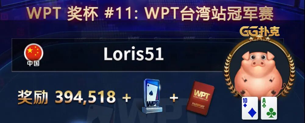 北京时间2020年10月13日晚上20:00展开的WPT奖杯 #11: WPT台湾站冠军赛,经过10个小时的征战,最终由中国玩家Loris51再添一冠成功问鼎本场比赛的冠军宝座,这是他在GG扑克举办的国际大型线上赛的第二个冠军。