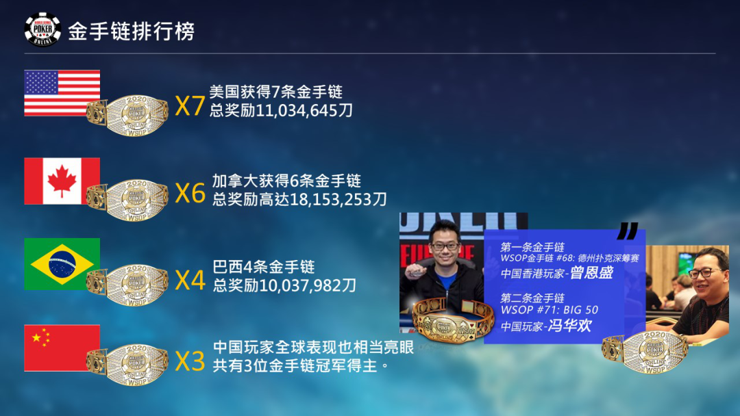 中国玩家全球表现也相当亮眼,共有3位金手链冠军得主。