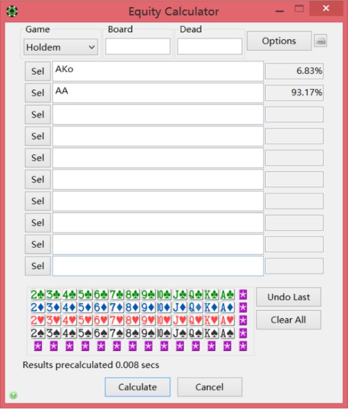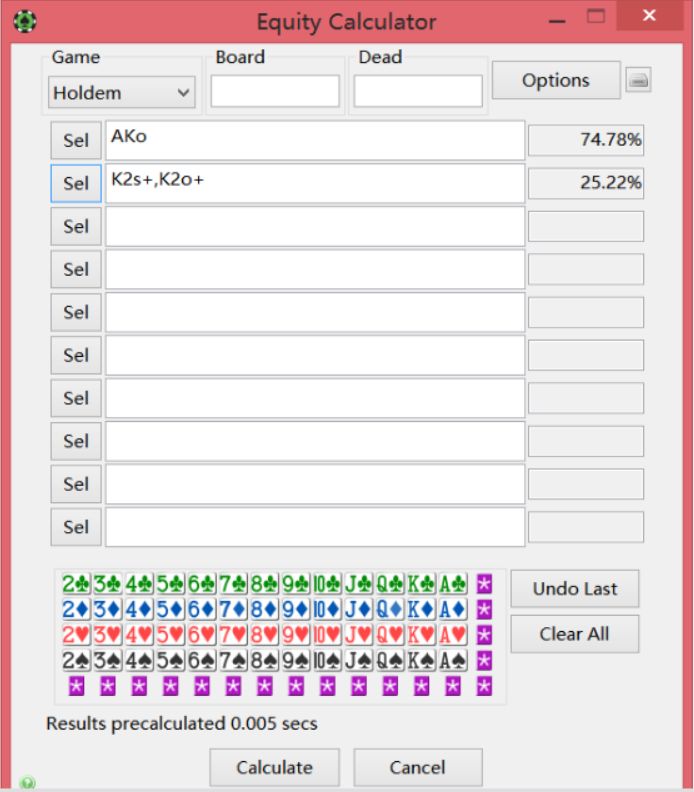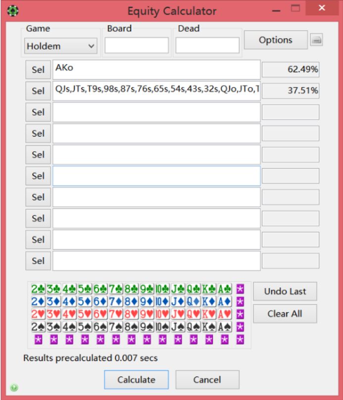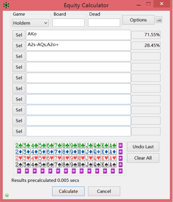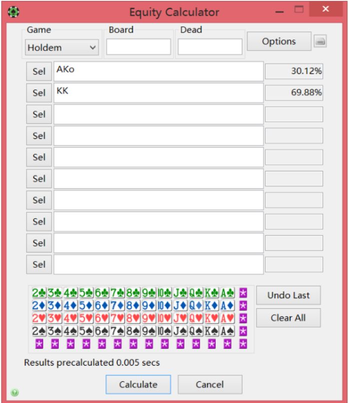 首先我们来看一下AKo面对其他手牌的具体胜率到底如何: