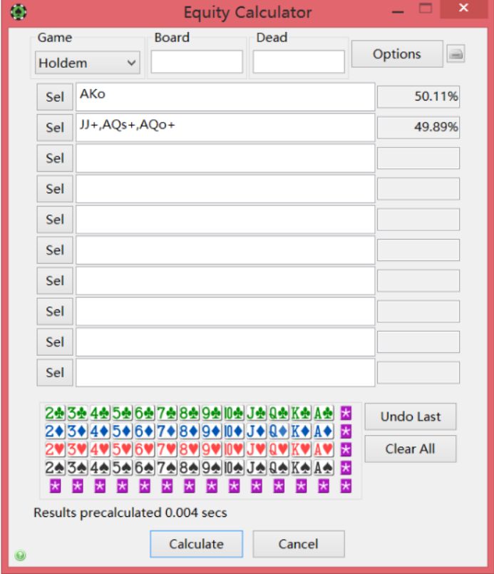 而面对一个偏松的全下范围,即JJ+和AQ+,结果如下: