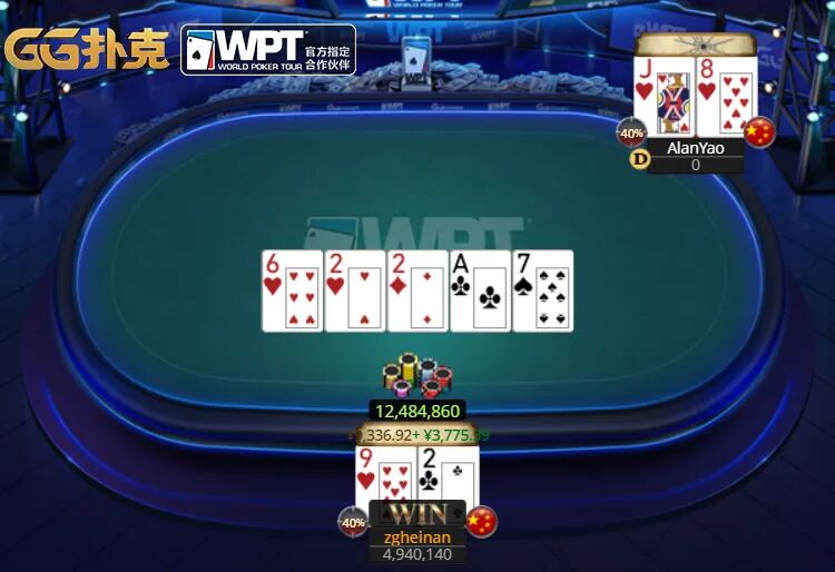 本场比赛的最后一手牌Alan Yao和Xiaosong Zhu ( 祝小淞 )展开了激烈的交锋,盲注8万/16万 Ante4万。翻牌前Alan Yao拿Jh8h在BTN位加注32万,Xiaosong Zhu ( 祝小淞 )用9h2c做了一个3-bet加注到96万, AlanYao跟注。翻牌:6h2h2d,Xiaosong Zhu ( 祝小淞 )击中明三条,AlanYao则是同花听牌。行动来到Xiaosong Zhu ( 祝小淞 )这里他全下10,202,570,Alan Yao还剩5,262,430他用同花听牌全下仅剩的5,262,430,两人在翻牌打光。转牌:Ac,Xiaosong Zhu ( 祝小淞 )继续保持领先,Alan Yao依旧是听牌。河牌:7s,河牌没有红桃发出, AlanYao听花失败,Xiaosong Zhu ( 祝小淞 )的三条坚持到了最后。最终Xiaosong Zhu ( 祝小淞 )成功赢下了本场比赛!