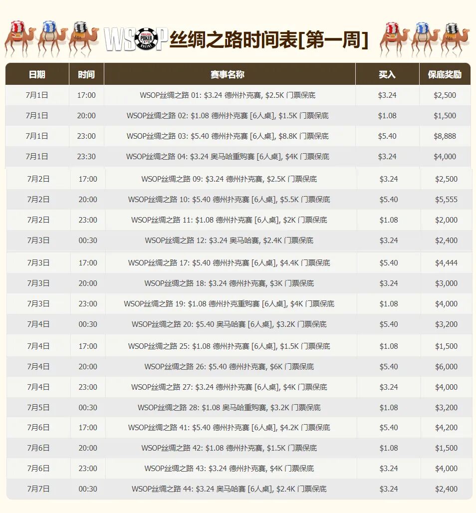 最终WSOP丝绸之路赛事请以游戏内公布为主
