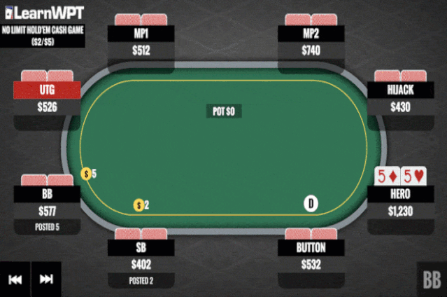 这手牌出自无限注德州扑克现金桌,盲注级别为2/5,没有前注,八位玩家筹码量如下图所示。 翻牌前:前面玩家弃牌到处于关煞位置的我行动,我手持5♦ 5♥平跟,按钮位置玩家平跟,小盲和大盲位置玩家弃牌,枪口位置玩家平跟。 翻牌圈:2♣ 8♣ 2♠,底池:37,枪口位置玩家抢先下注25,我该如何行动?跟注?弃牌?还是加注? 职业牌手的解析 扑克中最为关键的错误之一是玩家总是一条街一条街地思考。他们在每一条街都问自己:我领先吗?然后再做出相应的行动。在长期来看,这是一种失败的策略。 在扑克中,只有两种赢得底池的方法——除你之外的其余玩家均弃牌,或你在河牌圈摊牌时亮出牌力最强的牌。 记住以上所说的两种赢得底池的方法,你不应该再一条街一条街地问自己是否领先。反之,你应该问自己是否能在这里让对手弃牌或者能否摊牌拿价值。 在这手牌中,我们在翻牌前以150个大盲的有效筹码深度用口袋对55跟注进池。口袋对是非常强大的投机性手牌,非常适合翻前跟注进场看翻牌,假设击中暗三条则可以很好地从位于前面位置的加注者手中拿到大价值。 一旦我们在翻牌圈没有击中暗三条,我们应该立即停止游戏这手牌。在这里,一对5是最好的牌吗?某些时候,它可能是目前最好的牌,比如对手的范围包括AK、AQ之类的错过翻牌的两高张。 不管我们是否暂时领先都不是重点,最重要的是我们是否能摊牌盈利。 如果对手持续在转牌圈和河牌圈开枪,我们的口袋对5该怎么办?对手是否认为我们的牌力更弱些?难道我们要连跟三条街只祈求对手是没中牌AK? 有可能我们在翻牌圈弃掉的口袋对5是当时最好的一手牌,但这完全没有问题。我们在翻牌前选择游戏这手牌时就对翻牌后的行动立下了一个特定的计划。 盈亏平衡的玩家和盈利玩家之间最大的区别之一是,盈亏平衡的玩家总是需要使自己确信自身牌力是落后的,他们往往会跟注翻牌圈的下注去多看一张牌,然而,在这个过程中将不知不觉地损失很多价值。 盈利玩家知道无论他们是否拥有当前最强牌力都没关系,因为继续跟注在长期看来是无利可图的行动。 综上所述,在这手牌中,弃牌是最好的选择。